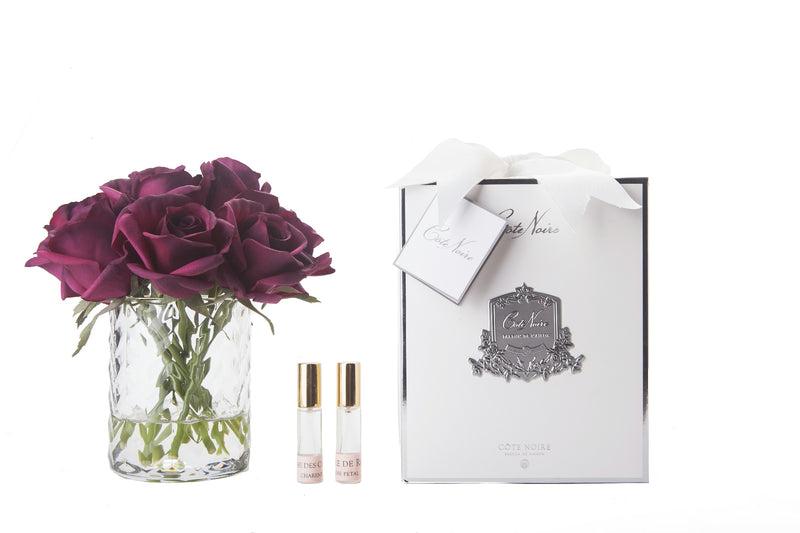 Cote Noire Herringbone Clear Glass - Carmin Rose Buds