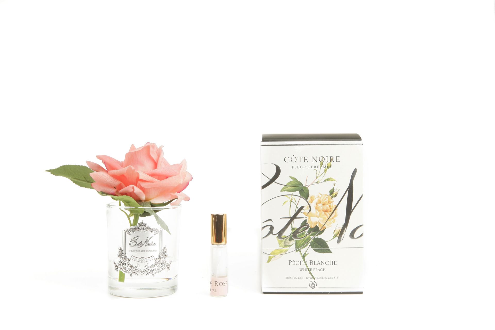 Cote Noire Single French Rose White Peach Clear Glass with Silver Crest