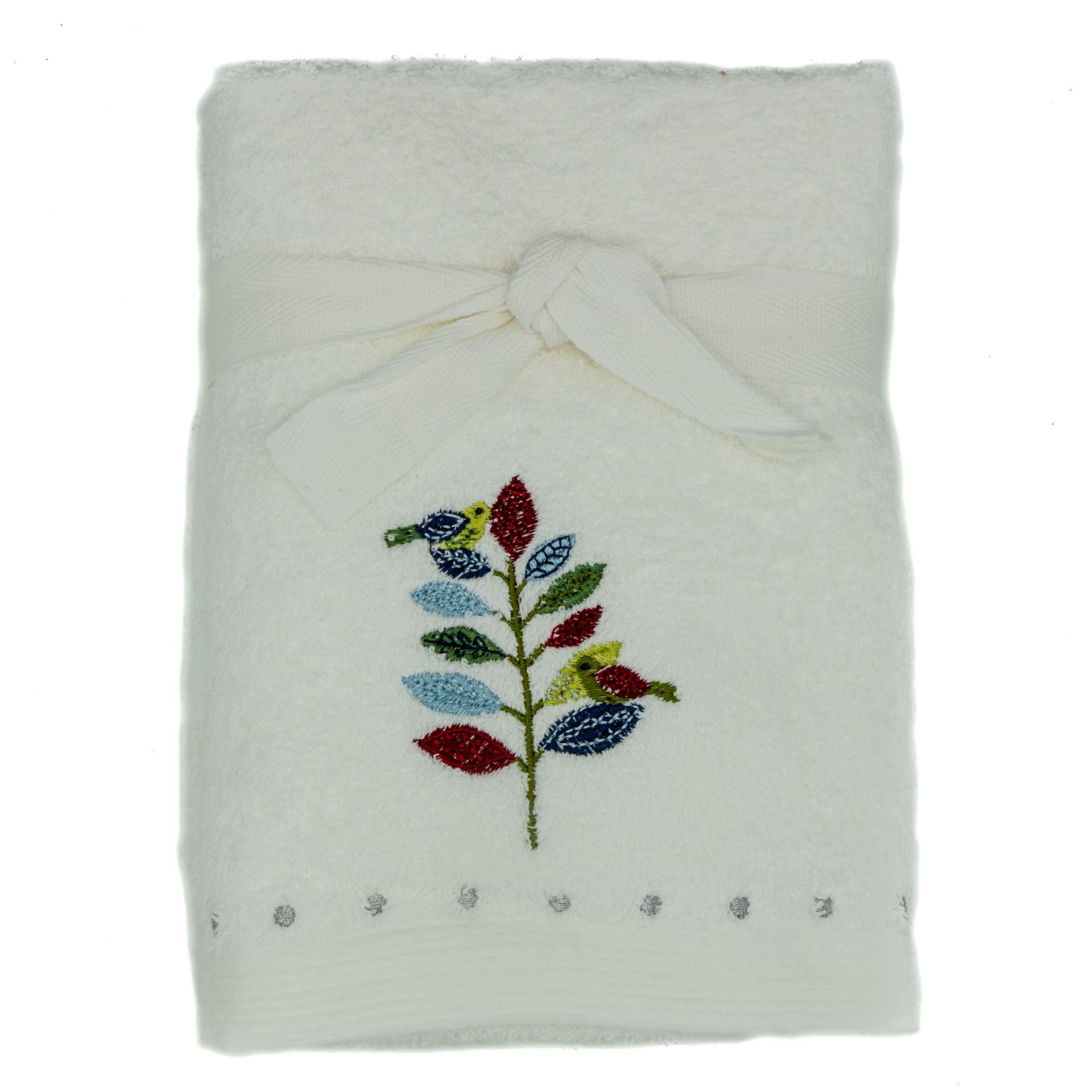 Hand Towel set of 2 - Birds on coloured tree white towel